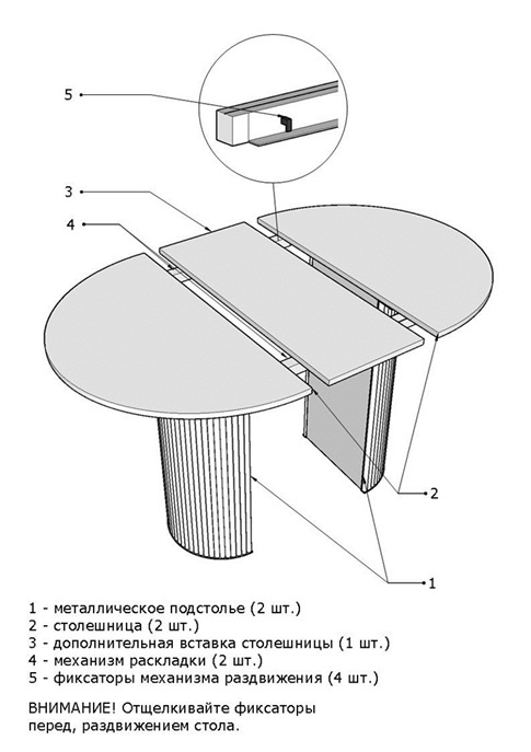 Он легко раздвигается до формы овал, что делает его удобным для использования в небольших помещениях.